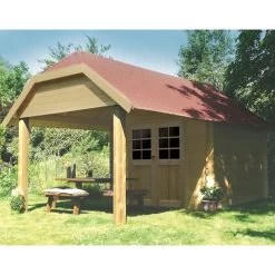 Abri De Jardin En Bois De Douglas 9,85m² DUBLIN 28mm + Couverture Onduline – HABRITA