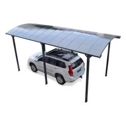 Carport Double En Bois Autoclave 40,2m² Avec Poteau En Arc Et Toit En PVC Gris – KARIBU