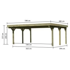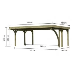 Carport Double En Bois Autoclave 28,3m² Avec Poteau En Arc Et Toit En Acier – KARIBU
