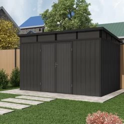 Abri De Jardin En Bois Composite 28mm Anthracite 8,09m² GORDON Skylight – Woodlife Garden