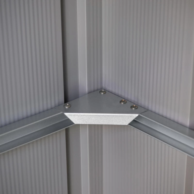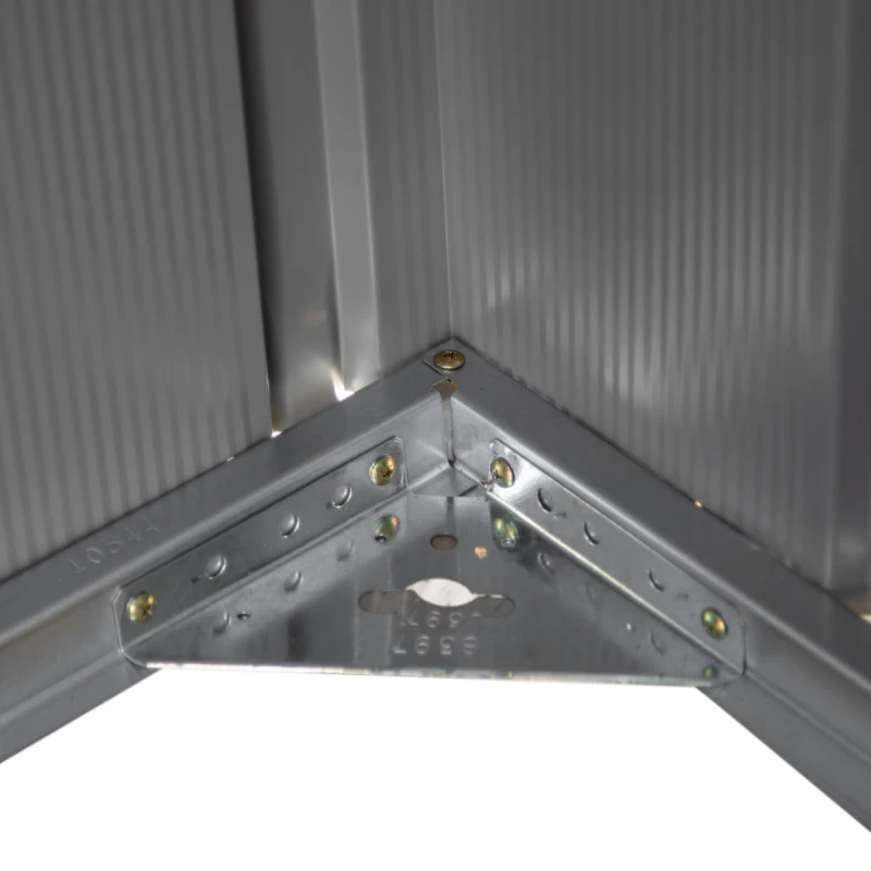 Réalisé en tôles d’acier galvanisé de 0,3mm d’épaisseur qui se vissent sur la structure, le montage de l’abri se fait très facilement et rapidement. Tous les éléments sont pré-percés en usine et prêts à être assemblés, avec une notice de montage très détaillée dans laquelle chaque pièce est clairement identifiée, au moyen d’une référence et par un dessin technique.