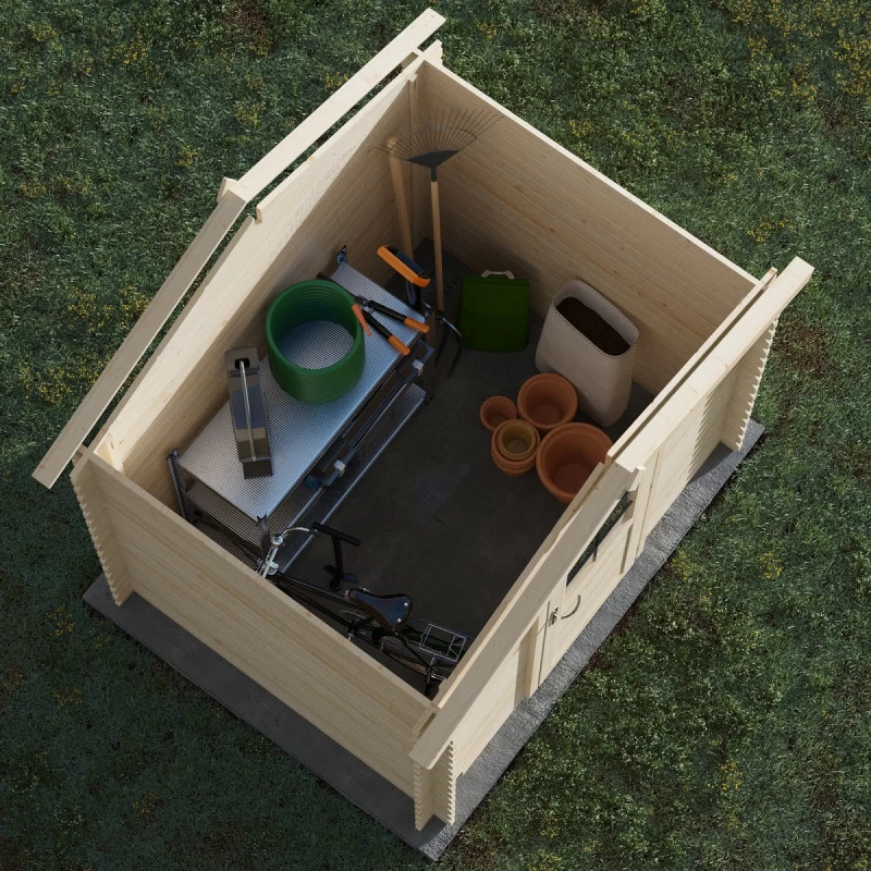 Écologique, l’abri de jardin en bois 4,9m² Kariba est réalisé en épicéa massif issu des forêts gérées d’une manière responsable. Les madriers en 19mm sont emboîtables pour un montage simple et rapide. Livrés en état brut, ils nécessitent l’application d’une couche de lasure pour renforcer leur résistance aux intempéries. La peinture dans une couleur au choix est une solution pratique pour personnaliser votre abri de jardin Forest Style.