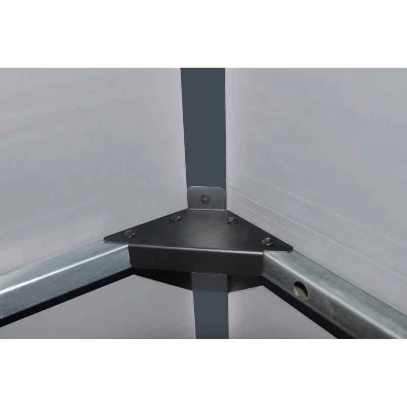 Les parois sont constituées de panneaux robustes en polypropylène de 12mm d’épaisseur, qui s’assemblent facilement et rapidement sur l’armature en acier galvanisé à chaud. Le polypropylène est d’un maniement léger et offre une excellente résistance mécanique. Il est facile à entretenir, et ne demande qu’un nettoyage annuel qui se fait au moyen d’un jet d’eau ou à l’eau savonneuse, avec seau et éponge.