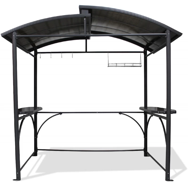 Cet abri pour barbecue en aluminium gris anthracite est pourvu d’un design élégant et épuré. Grâce à sa conception très fonctionnelle, vous pourrez faire cuire vos grillades en restant à l’abri des éléments, et disposer d’un espace de travail très confortable. L’abri est pourvu d’une toiture à deux niveaux en polycarbonate teinté de 6mm d’épaisseur, qui empêche l’accumulation de la chaleur ou des fumées, pour un tirage naturel efficace.