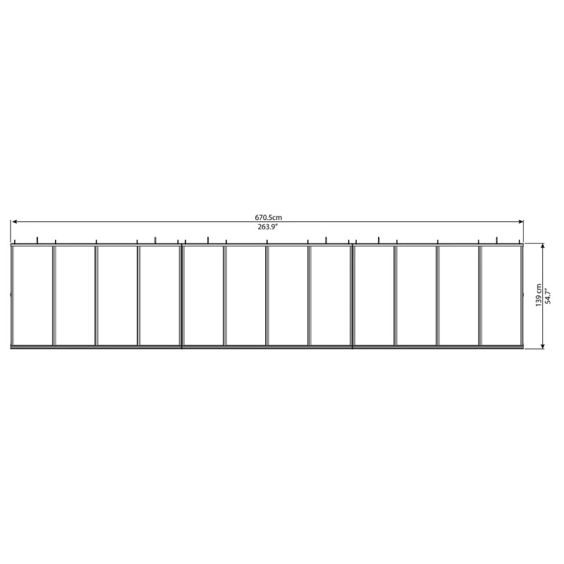 D’un entretien facile et traité anti-UV, ces panneaux laissent passer 90% de la lumière, comme le verre, mais sans risquer de se briser. Le cadre en aluminium ultra-résistant et les bras de support en acier galvanisé peints en blanc par poudrage sont résistants à la rouille, et un élément central de support ajoute encore à la stabilité structurelle.