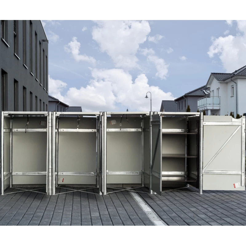 Avec ses 4 compartiments, le cache-poubelle Hide vous permettra de pratiquer un tri sélectif en un simple geste. Réalisé avec des matériaux de première qualité, ce cache-poubelle accueille 4 conteneurs à déchets d’un volume de 240L chacun. Le cadre est en acier galvanisé à chaud et les parois sont réalisées en aluminium composite, pour une durabilité et une solidité inégalées.