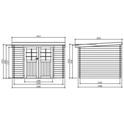 • 2 parois latérales pleines 180x230cm, 1 paroi latérale pleine 270x245cm, 1 paroi avec porte double battante semi-vitrée