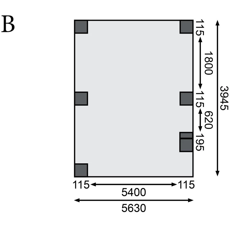 Dimensions extérieures (LxP) : 563×394,5cm