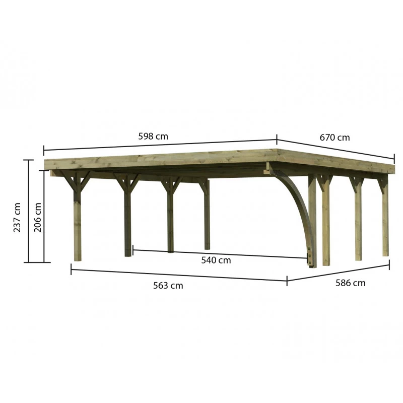 Carport Double En Bois Autoclave 40,2m² Avec Poteau En Arc Et Toit En PVC Gris – KARIBU