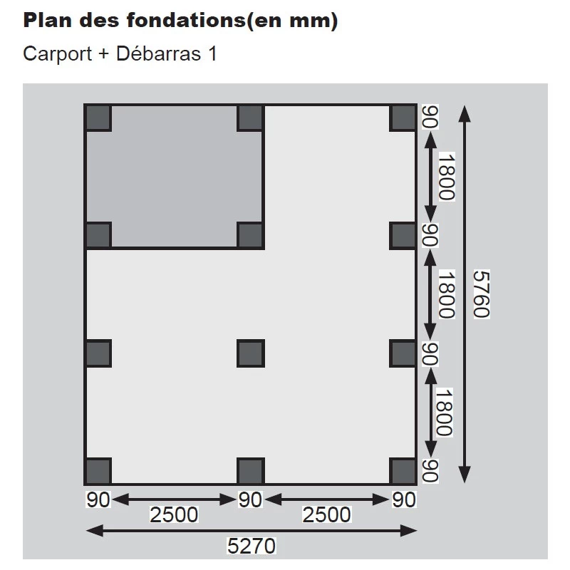 Sections de poteaux : 90x90mm