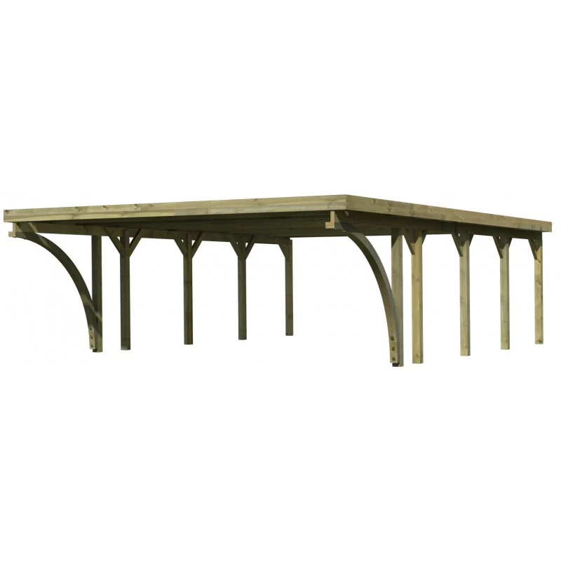 L’avis du spĂ©cialiste sur le carport pin massif traitĂ© autoclave 40,2m² Classic Double 2 + toit acier + 2 arcs Karibu