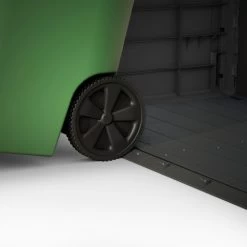 Ce coffre de rangement multifonctions en résine extrudée épaisse de 12mm du fabricant Keter a une capacité de 1200L, ce qui est suffisant pour y ranger deux poubelles de 240L. Mais ce coffre, avec son aération et le plancher fourni qui garderont vos objets au sec toute l’année, peut avoir de nombreuses utilisations.