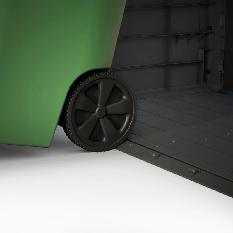 Grâce à la double porte sur toute la largeur, avec seuil incliné et verrouillable, vous pourrez en toute sécurité y stocker vélos, tondeuses, ou y installer vos circuits de filtration pour la piscine, afin qu’ils soient protégés et pour réduire leur débit sonore.