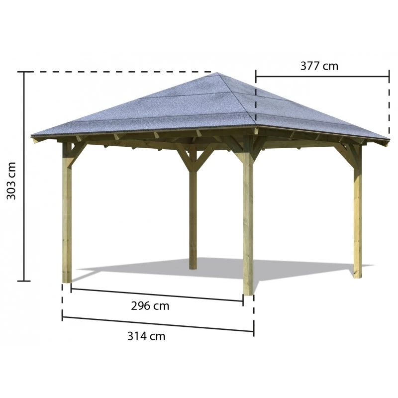 L’avis du spécialiste sur le kiosque carré en pin massif Granada – 3,77×3,77m – Karibu