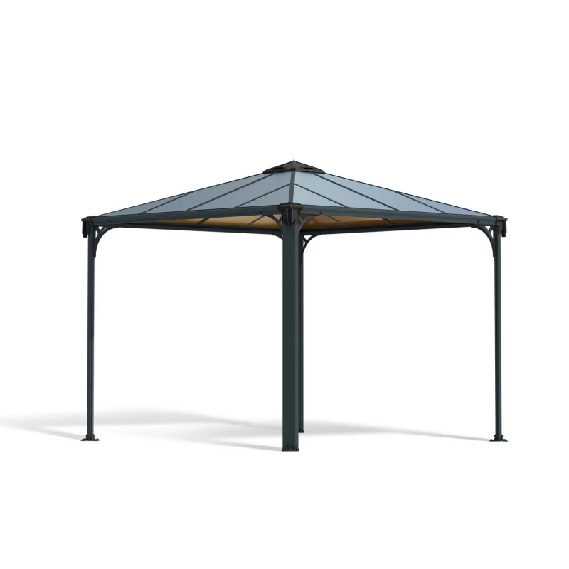 La pergola Palermo™ de la marque Canopia by Palram allie une élégance classique et une fonctionnalité remarquable. Classique de par ses formes carrées de larges dimensions (295x295cm), ses poteaux décorés style art nouveau, avec les raccords d’angles en acier galvanisé découpés au laser et ses panneaux de toit en polycarbonate teintés bronze spectralement sélectifs.