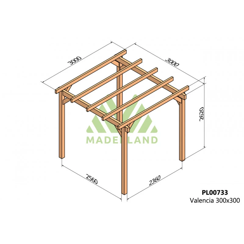 Pergola En Bois Lamellé-collé 300x300cm Valencia – Maderland