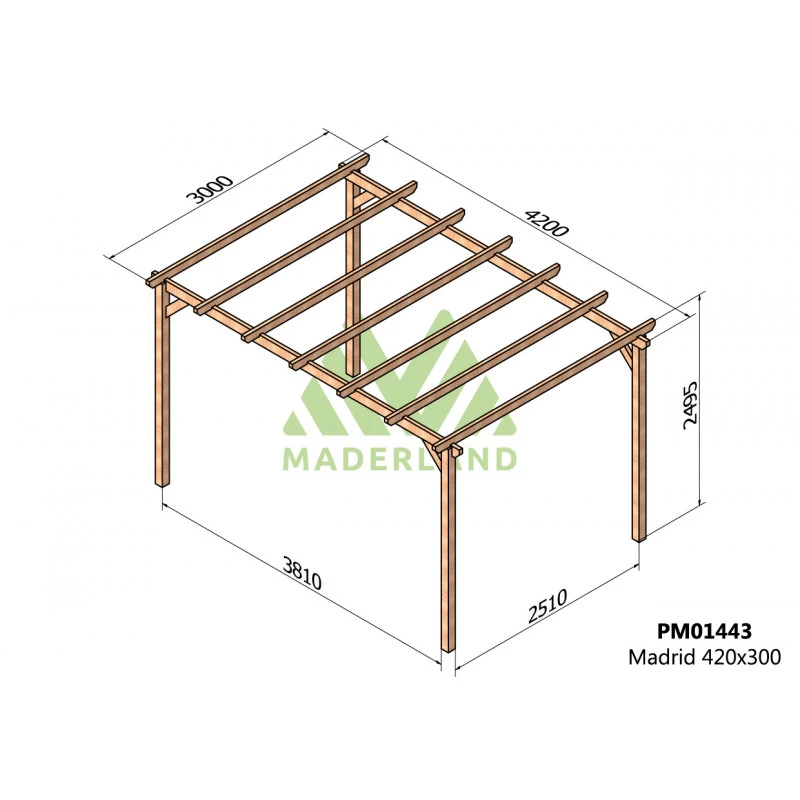 La pergola en bois massif Madrid du fabricant Maderland est le choix idéal pour créer un espace de vie agréable à l’extérieur de la maison. D’une hauteur sous faîtage de 249cm et disponible en plusieurs tailles, elle saura répondre parfaitement à vos besoins.