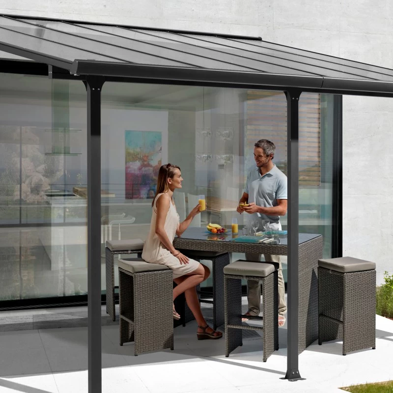 Le design contemporain en gris anthracite du toit de terrasse TT 3050 AL s’intĂ©grera Ă la perfection dans tout type d’environnement.