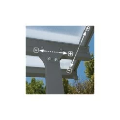 – Polycarbonate pour ses panneaux : solide, durable, traitĂ© anti-UV tout en laissant passer la lumière du soleil : l’espace sous la couverture de terrasse est lumineux et les meubles sont protĂ©gĂ©s contre les UV.