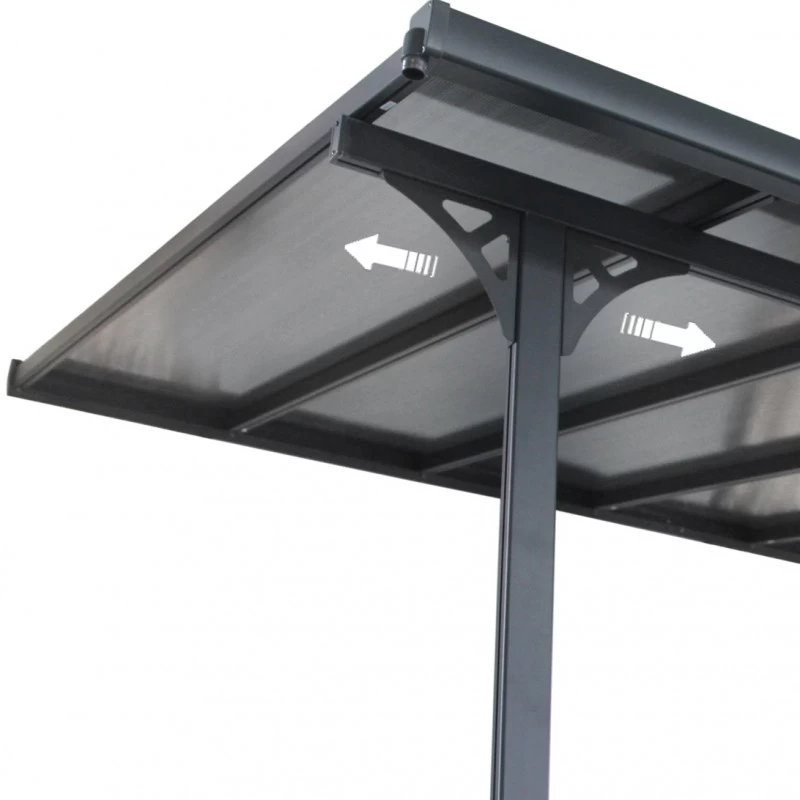Les poteaux et la structure en aluminium laqué blanc sont garantis 10 ans contre la corrosion, et les panneaux de la toiture en polycarbonate transparent traité anti-UV apporteront une grande clarté, tout en vous protégeant du rayonnement solaire.